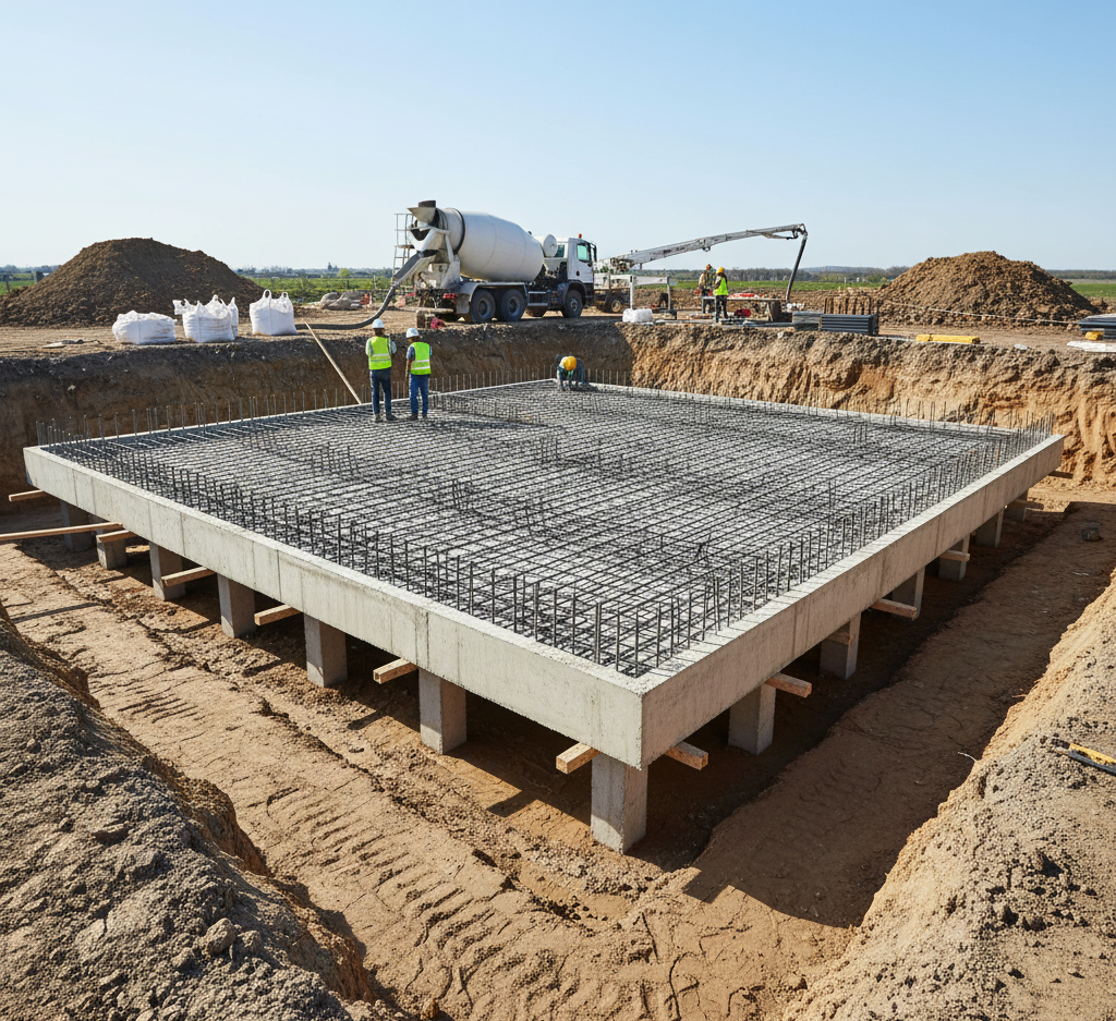 Les fondations en dalle : Elles sont souvent utilisées dans les constructions résidentielles et peuvent être une option viable pour les terrains argileux. Cependant, elles nécessitent une préparation minutieuse du sol et une isolation correcte pour éviter les problèmes d’humidité et de gonflement.